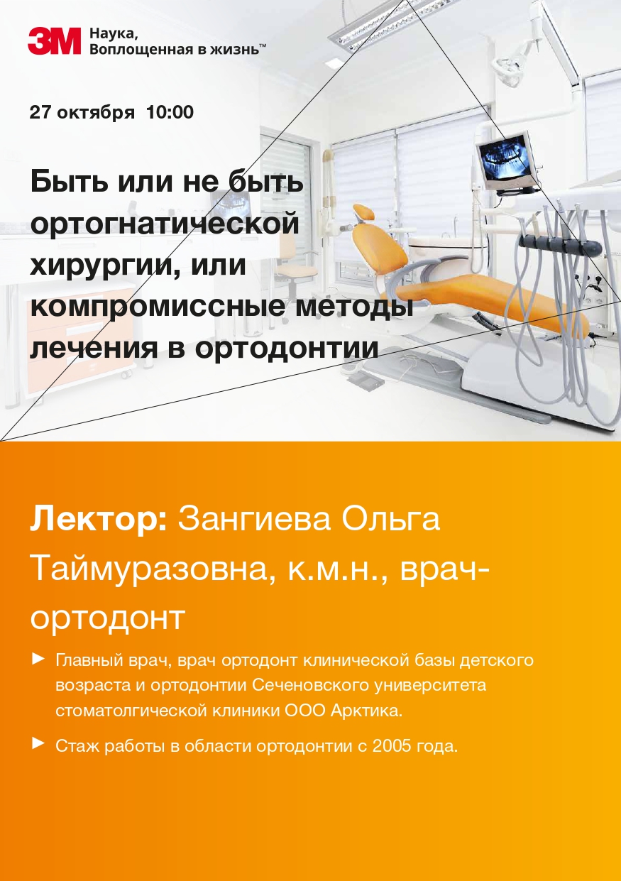 27 октября 2020 г. Вебинар от 3М: "Быть или ортогнатической хирургии, или компромиссные методы лечения в ортодонтии"