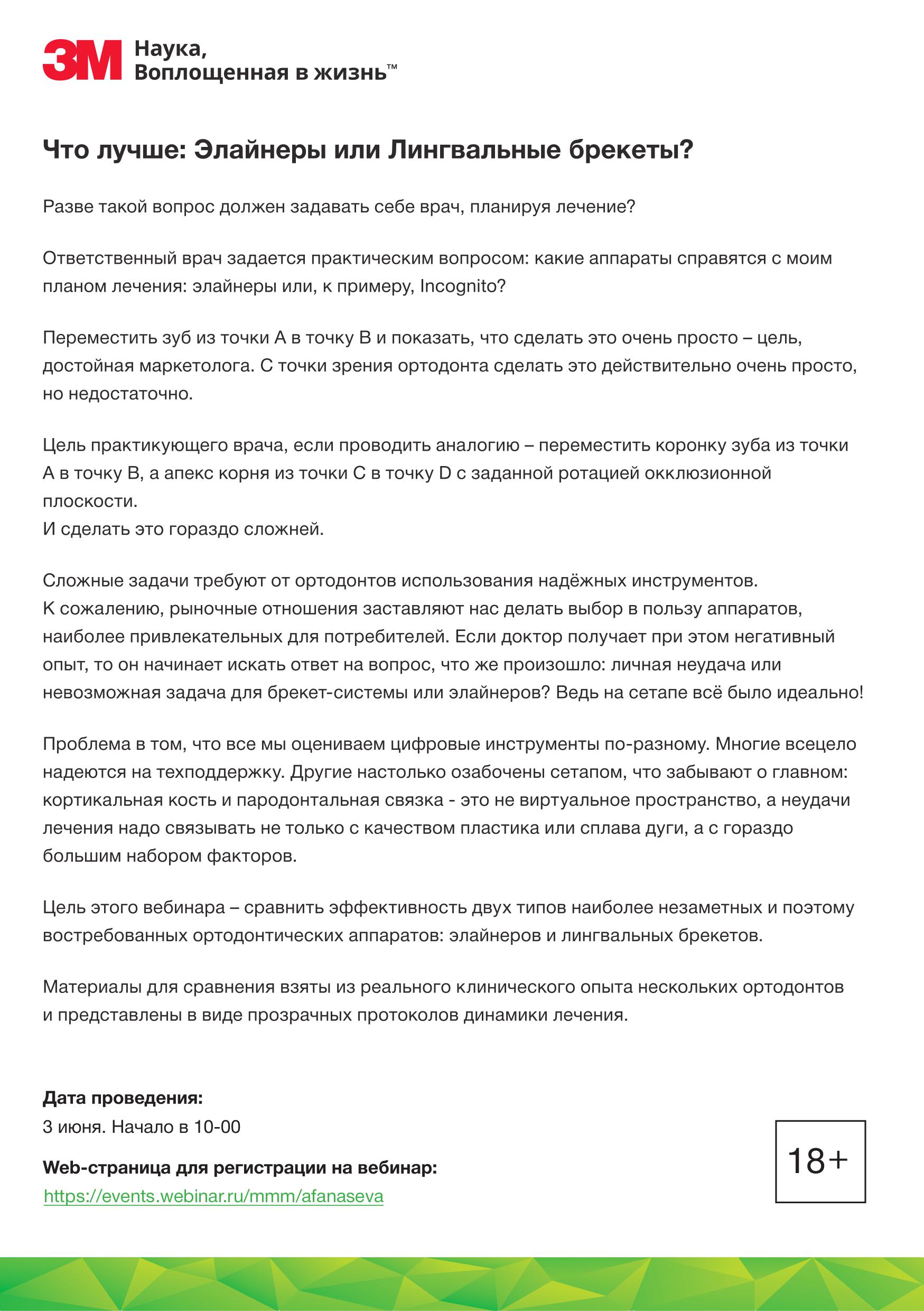 Вебинар от 3М " Что лучше: Элайнеры или Лингвальные брекеты ?"